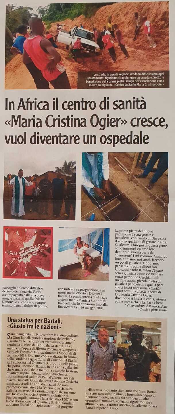 Un caro saluto a tutti....con la benedizione della prima pietra,sono ufficialmente iniziati i lavori di ampliamento del Centre de sante' a Nkongolo Monjii,un importante progetto che permetterá la costruzione di un reparto di pediatria e un sala degenza medicina generale. la costruzione del Centre de sante' ha soddisfatto le esigenze della popolazione locale e non solo, arrivano anche persone dai villaggi piú lontani per partorire e farsi curare ecco quindi l'esigenza di ampliare un centro rendendolo più completo. I medici e le suore (personale tutto locale)insieme al vescovo di Luebo ringraziano tutti per questo grande progetto fatto dai fratelli italiani in una zona completamente priva di ogni realtá sanitaria ...."Dedicatevi a quelle poche cose che contano,meravigliatevi di una nuvola che solca il cielo,siate cercatori di bellezza,siate voi stessi bellezza,quella dei sorrisi,degli sguardi profondi, degli abbracci donati."...