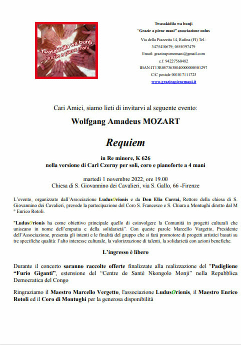 Vi aspettiamo numerosi il 1 novembre alle ore 19 nella chiesa di San Giovannino de'Cavalieri in via San Gallo 66 .