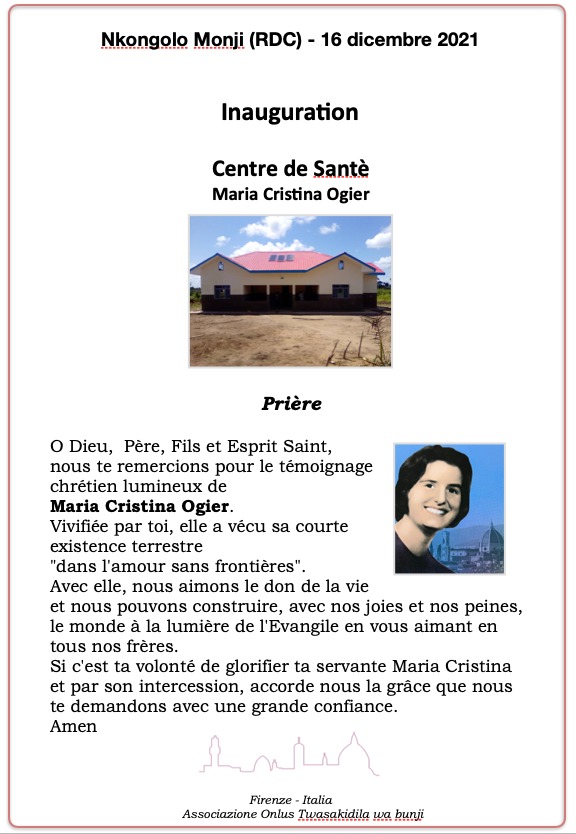 Un caro saluto a tutti....con la benedizione della prima pietra,sono ufficialmente iniziati i lavori di ampliamento del Centre de sante' a Nkongolo Monjii,un importante progetto che permetterá la costruzione di un reparto di pediatria e un sala degenza medicina generale. la costruzione del Centre de sante' ha soddisfatto le esigenze della popolazione locale e non solo, arrivano anche persone dai villaggi piú lontani per partorire e farsi curare ecco quindi l'esigenza di ampliare un centro rendendolo più completo. I medici e le suore (personale tutto locale)insieme al vescovo di Luebo ringraziano tutti per questo grande progetto fatto dai fratelli italiani in una zona completamente priva di ogni realtá sanitaria ...."Dedicatevi a quelle poche cose che contano,meravigliatevi di una nuvola che solca il cielo,siate cercatori di bellezza,siate voi stessi bellezza,quella dei sorrisi,degli sguardi profondi, degli abbracci donati."...